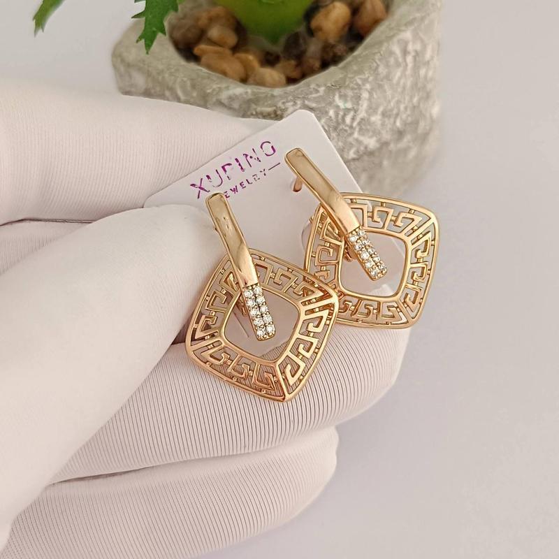 Сережки Xuping Jewelry ромб із грецьким візерунком золотисті довжина 2,8 см ширина 2 см застібка англійська