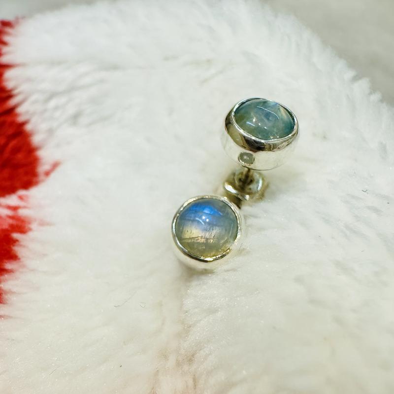 Дуже гарні сережки ручної роботи з натуральним місячним каменем українського бренду knot jewelry (раніше називався accents jewelry). Прикраса виготовлена зі срібла. Застібка - закрутка, яка не травмує шкіру. Розмір - 5 мм. Купувала на Slash dot dash за 2000. Стан чудовий, лише на одній середці потемнішало срібло з вн. сторони. Це можна прибрати + ця сторона йде до тіла, тому не видно. В ціні враховано