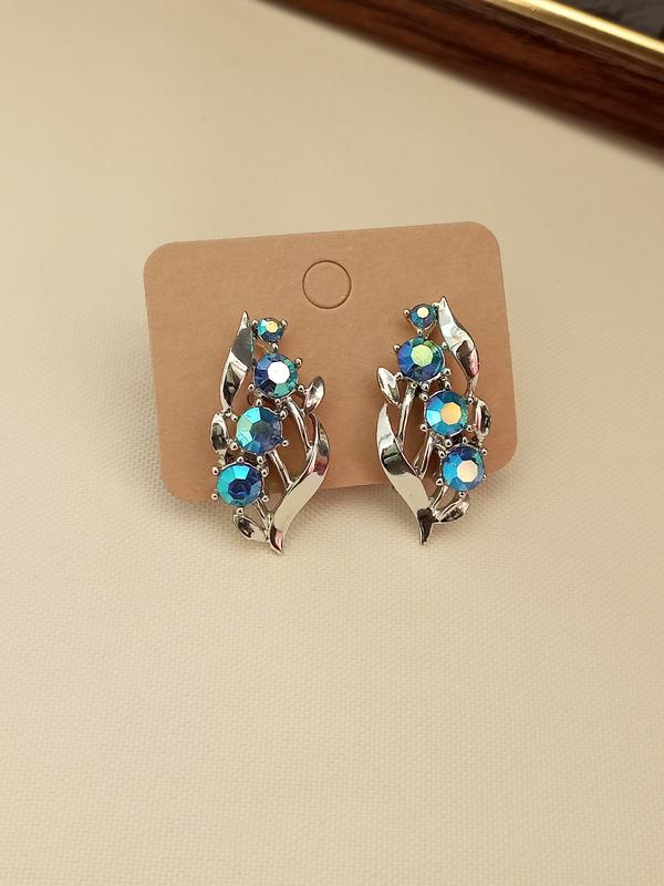 🌌 Елегантні сережки на гвинтах STAR у витонченому флористичному дизайні з сяйливими кристалами aurora borealis холодного блакитного відтінку. Плавні, вигнуті лінії сріблястого металу нагадують листя, а кристали красиво переливаються при кожному русі. Ідеальний стан 🔥 50-ті роки Розмір 3 см * 1,5 см