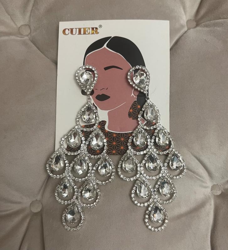 Великі і довгі сережки з кристалами для святкового образу. Ефектні для фотосесій та урочистих подій.