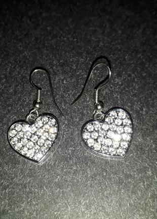 Маленькі і блискучі сережки у вигляді сердечок в каменях