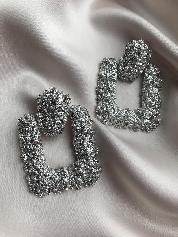 Стильні сережки, якісна біжутерія, сріблясті, квадратні сережки