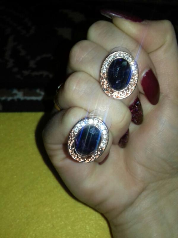 Ніжні сережки з глибоко бузковим камінчиком на цвяшку.