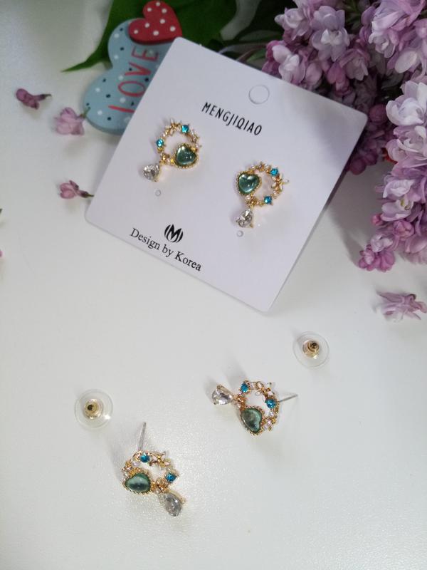 Ніжні сережки з дрібненькими квітами та сердечком. Є в 2 кольорах.