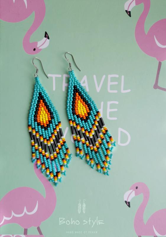 Сережки з бісеру, сережки в стилі бохо, brick stitch earrings