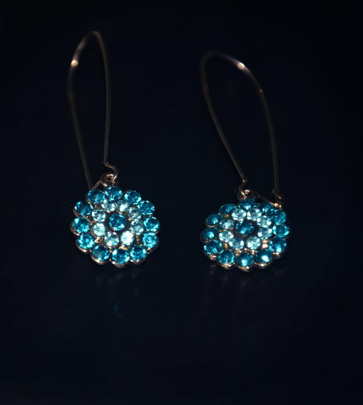 Сережки з блакитними камінням Фурнітура під срібло Довжина: 6 см