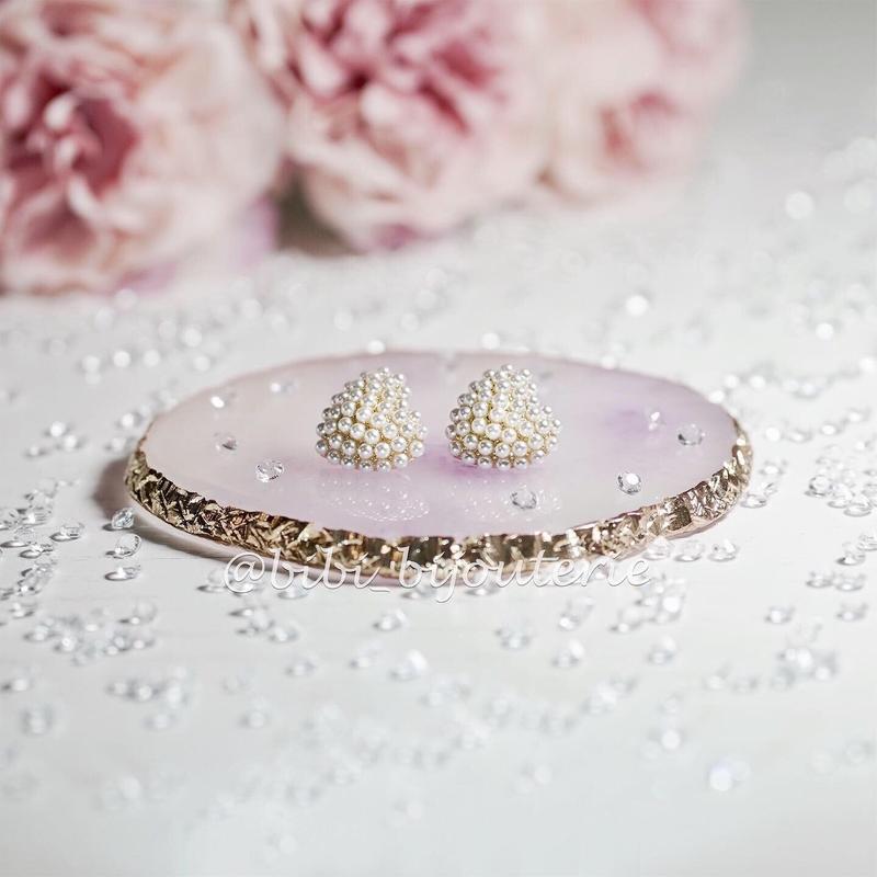 Миниатюрные жемчужные пусеты в форме сердца. Размер: 2х2 см Застёжка: гвоздики