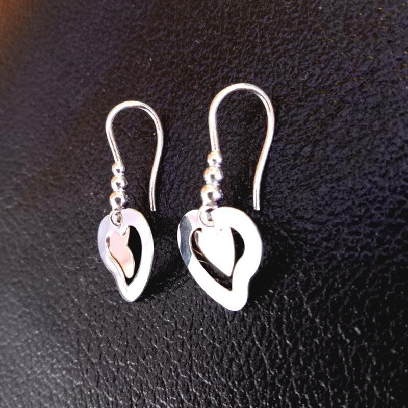 Срібні сережки петля у вигляді сердець з другої рухомою частиною Код 970221205 Вага 2.34