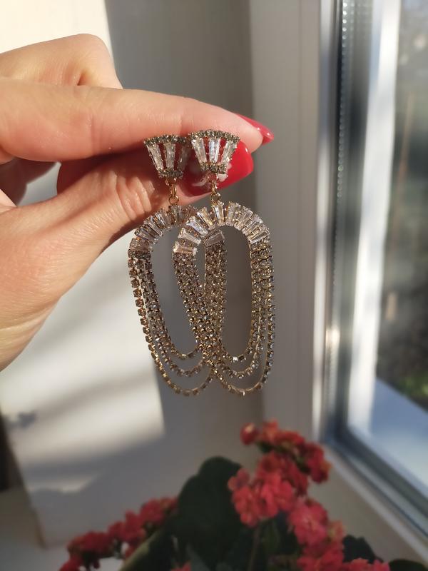 Вечерние красивые серьги в золоте с мерцающими камнями. Доставка Новой почтой/Укрпочтой