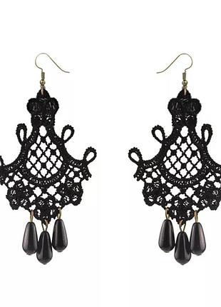 Красивые нежные серьги из черного кружева в стиле винтаж.