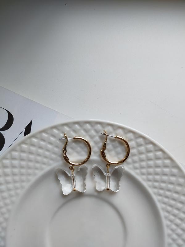 Ніжні сережки-кільця з підвісом бабочи Невеликі за розміром: 3-4 см в довжину Відправка Новою поштою /Укрпоштою Перед покупкою уточнюйте будь ласка деталі замовлення.