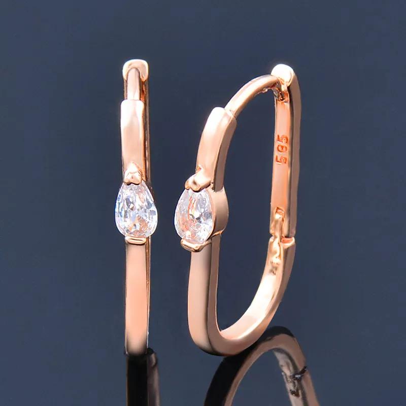 Сережки позолота кольору рожевого золота з цирконом і фіанітами розмір на фото, в наявності. В комплекті дешевше ! Високоякісне ювелірний виріб. Розміри більш докладно дивіться на моїй сторінці