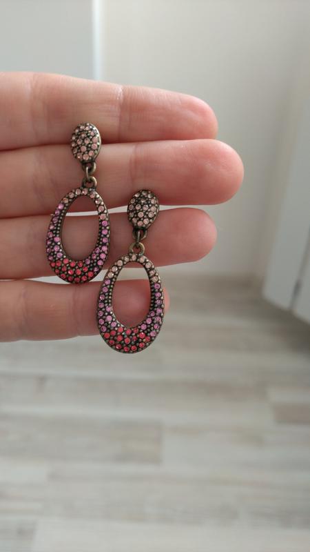 Сережки від Avon з дрібними камінчиками, переходять від рожевого до червоного кольору, оформлені в мідну оправу.