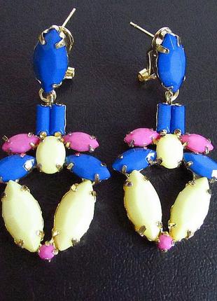 🏵Красивые яркие серьги с синими, желтыми и розовыми стразами. Тип замка - итальянский, размер - 5,5х2,5см Артикул 9749 Больше украшений тут: https://shafa.ua/member/klyuchnik Отвечу на все дополнительные вопросы. При желании сделаю дополнительные фото. Для Киева возможен самовывоз по желанию! Возврат - по договорённости. Отправка в течении 24 часов!