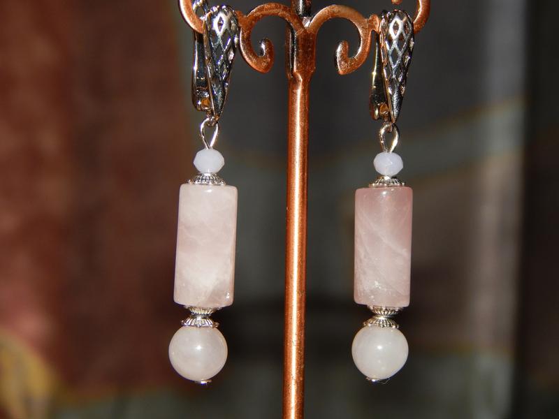 натуральний камінь рожевий кварц, футрнітура гіпоалергенна металева. 50мм×8мм