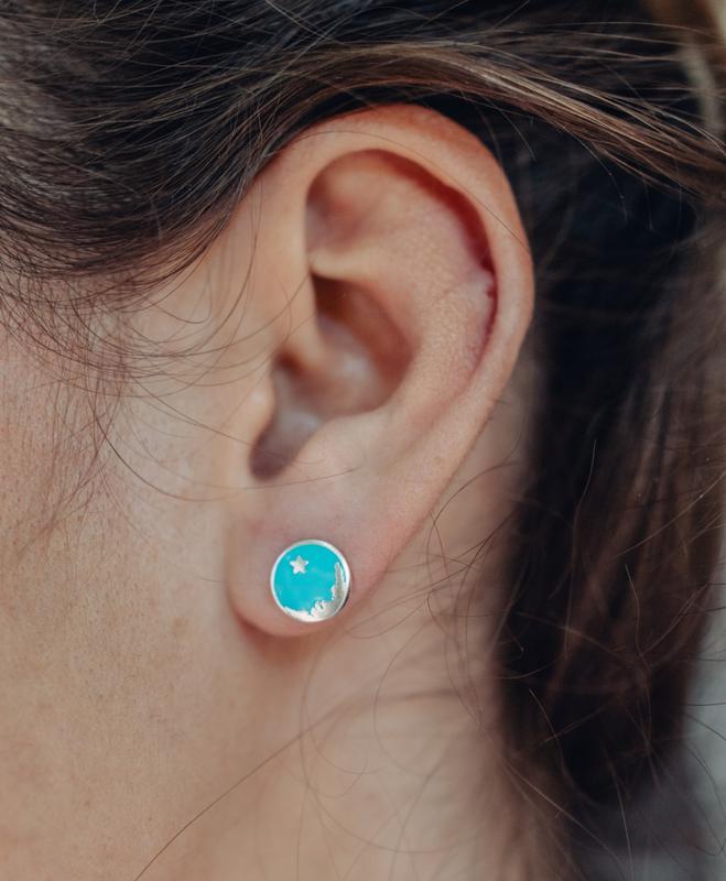 Сережки Небо бірюзового кольору, срібне покриття 925 проби, 8 мм