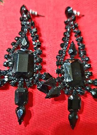 Ошатні сережки з чорними каменями.Довжина 7см. Застібка гвоздик.