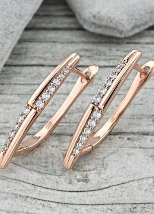 Сережки Мадрид розмір 31х3 мм білі фіаніти вага 2.7 м позолота РВ. Гипоаллергенно. - Позолота не боится воды. - Сохраняет цвет и блеск. Позолота РВ- соответствует цвету золота 585 пробы.