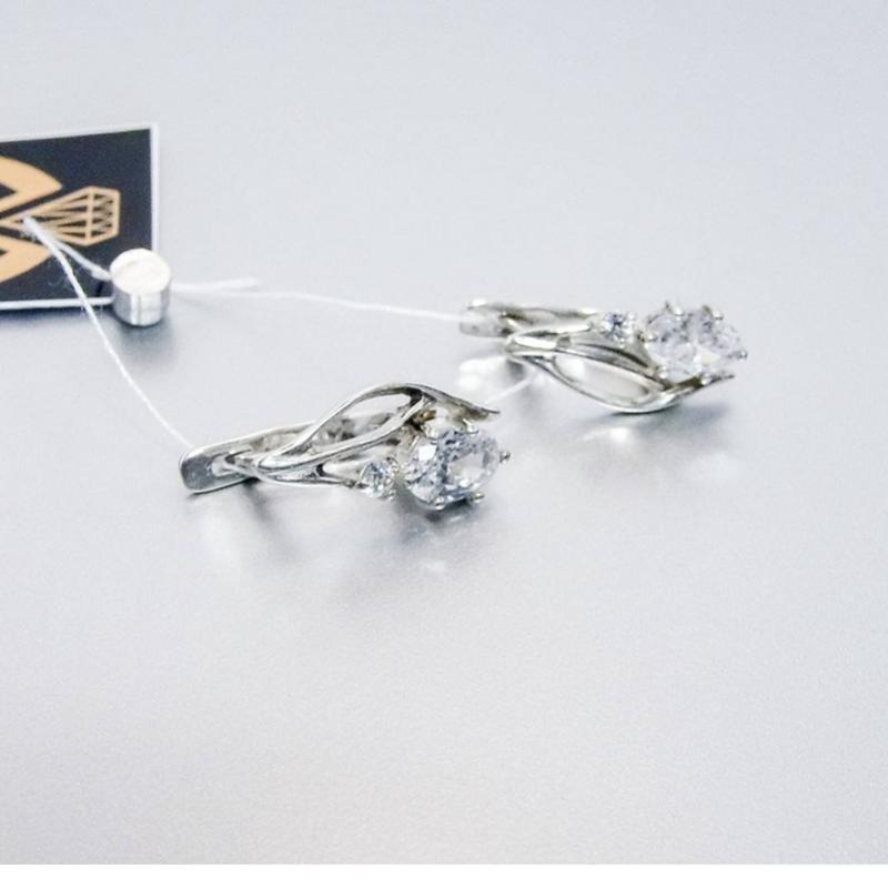 Сережки срібні 925 проби з білими фіанітами. Вага - 2,23 грам На виробах стоять проби, які підтверджують матеріал - срібло, і проба з пробірної палати України.
