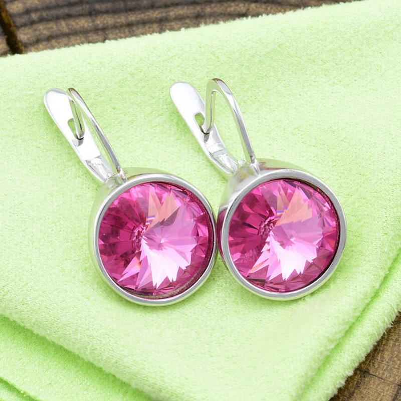 Сережки Xuping з кристалами Swarovski розмір 25х14 мм колір рожевий позолота Біле Золото.