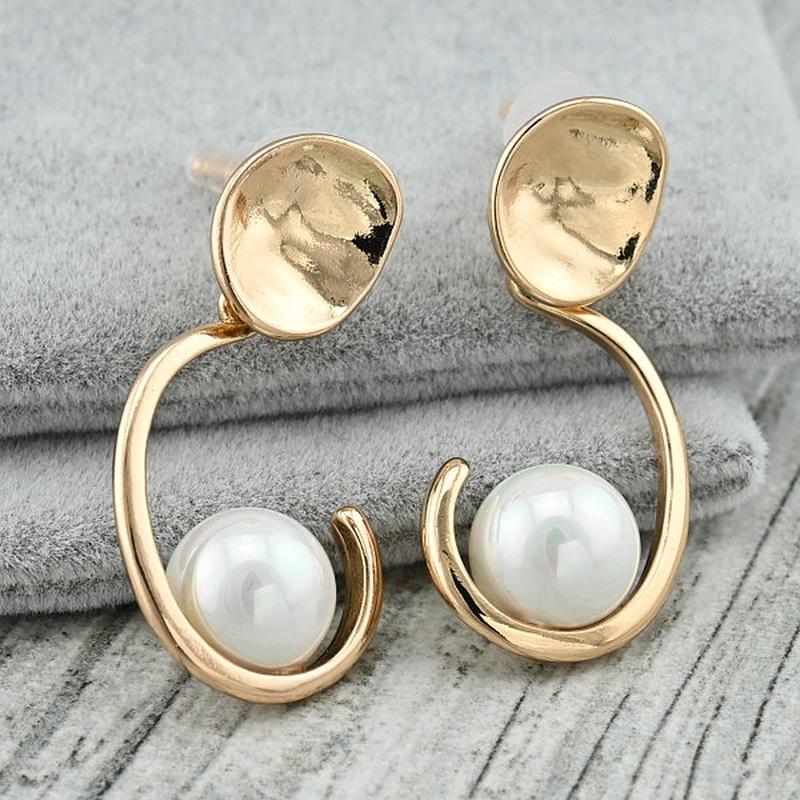 Сережки підвіски Королівський перли розмір 30х13 мм штучний перли вага 5.3 р позолота 18К.