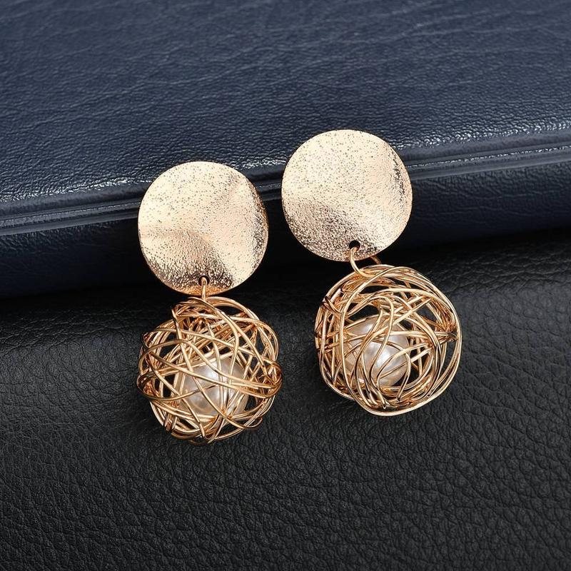 Оригінальні сережки під золото з білою бусиною всередині