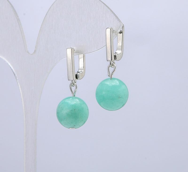 Сережки з натурального каменю Жадеїт d-12см L-18мм +-