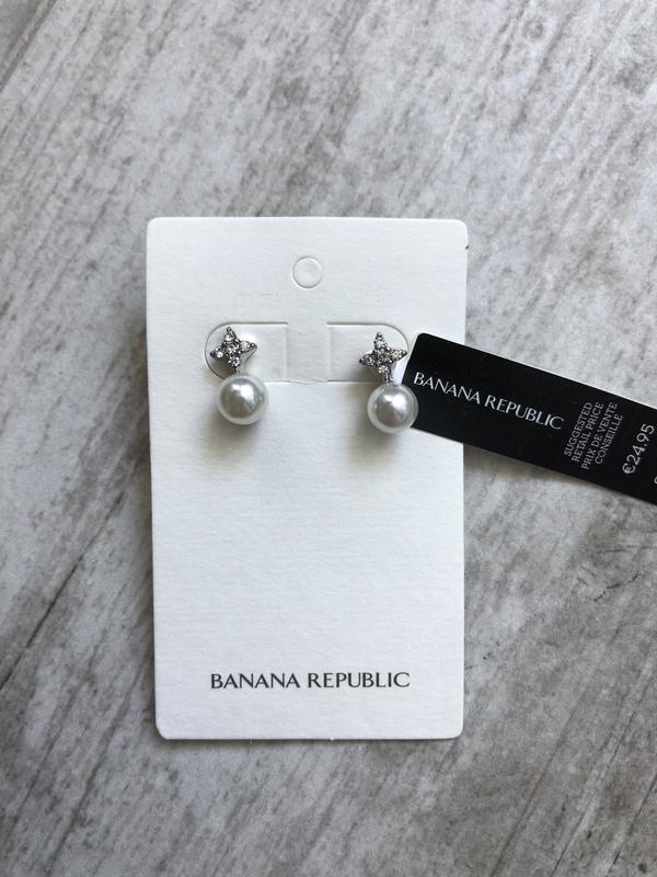 Сучасний американський стиль від Banana Republic. Біжутерія дуже високої якості, не облазить , не чорніє. Абсолютно нове! Красиві сережки-гвоздики з перлами і блискучими хрестиками, зручні і акуратні. В наявності 5 шт. За додатковою інформацією пишіть!