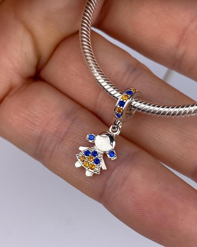 Шарм жіночий срібний з синьо-жовтими кольорами💛💙 💛💙Артикул 0489.90р 💛💙Середня вага-1,2 гр 💛💙Срібло 925 проби 💛💙Покриття родій 💎Вставка куб цирконії