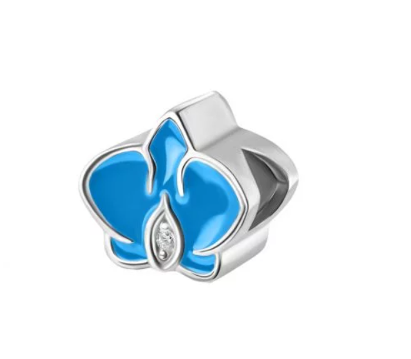 Срібний шарм з блакитною емаллю орхідея, срібло 925