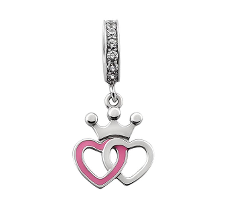 Срібний шарм П-031р шина з сердечками. Крім роздільника на підвісці поблискують два маленькі сердечка і корона, які надають нотки романтизму прикраси. Шарм зі срібла покритий родієм, він захищає виріб від механічних пошкоджень і надає йому блиск. На одному сердечку - рожева емаль. Шарм носять як на браслетику з плетінням снейк або ж його ще називають браслет пандора. Так само цей шарм можна носити на шиї як підвіс. Буде шарм прикрасою або ви його доповніть іншими шармами-пандоринами, вирішувати вам, а ми чекаємо вас на сторінках нашого сайту vybir-jewelry com ua