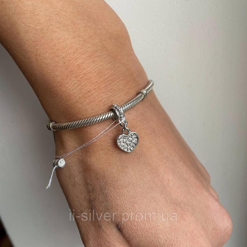 Срібло 925 проби стоїть на виробі, так само до прикраси кріпиться бирка заводу виробника, на якій вказані характеристики продукту та пломба. Розміри: діаметр кільця - 0.5см, довжина всього кулона - 2см, ширина серця - 0.9см Покриття: родій, завдяки йому прикраса не потемніє Вставка: цирконій, він має 57 граней (як у діаманта) при попаданні світла буде гарно переливатися