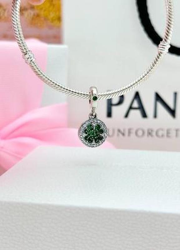 Срібна намистина-підвіска «сяючий чотирилисник» пандора