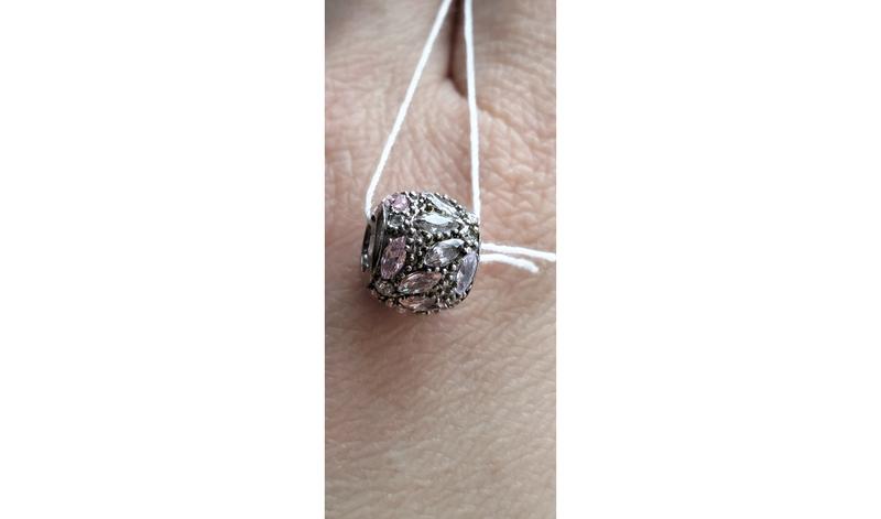 Серебряный шарм-бусина с кубическим цирконием розового и сиреневого цветов .вес 2.32г.покрытие родий.производство Ирида-В Харьков.пересылка по Украине