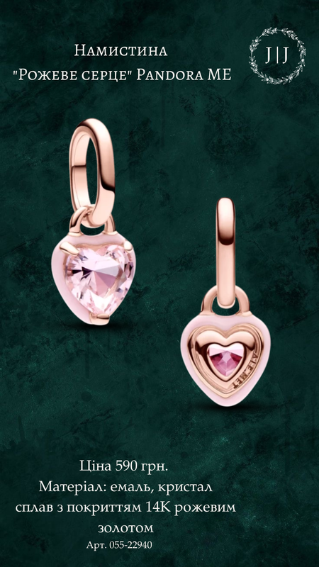 Срібна намистина Pandora Me Рожеве серце 783042C01 Артикул 055-22940