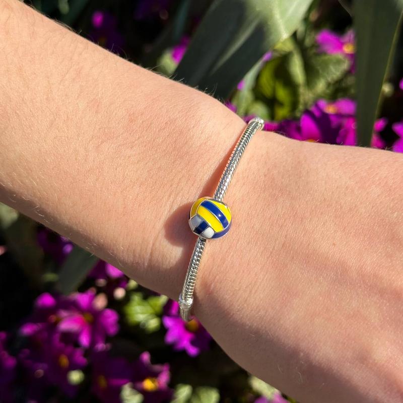 Серебряная бусина «Олейбольный мяч» Артикул: 077-12060 Материал: Серебро, Эмаль Проба: S925 Вес: 2,5 г Страна производитель: Таиланд