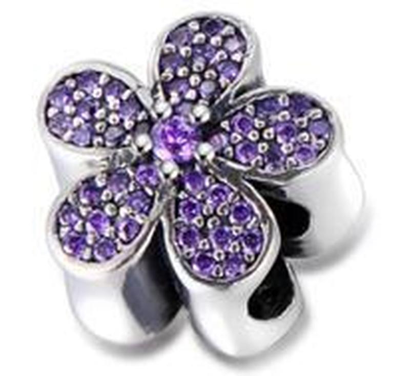 Срібна намистина (шарм) для браслета пандора "сяюча фіолетова ромашка" 791480cz-2
