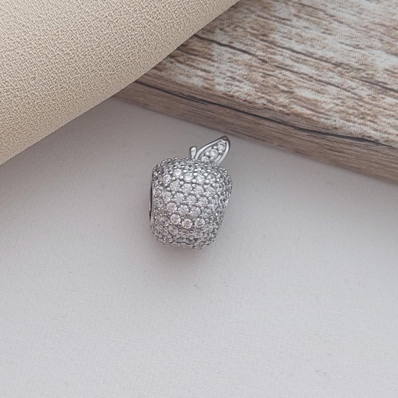 Шарм срібний яблуко з розсипом білих цирконів для браслета
