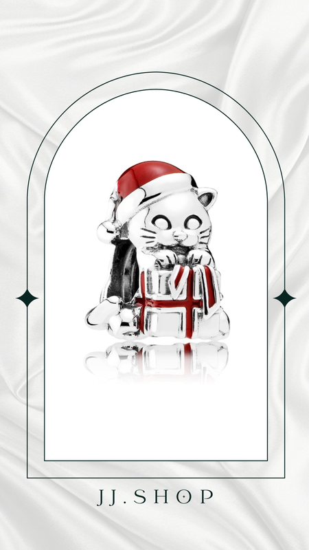 Срібна намистина шарм "котик з подарунком" pandora (пандора) 792007en39-2