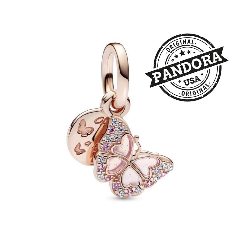 Шарм пандора оригінал сша срібло 925 проба рожеве золото метелик цирконий напис емаль бусі...