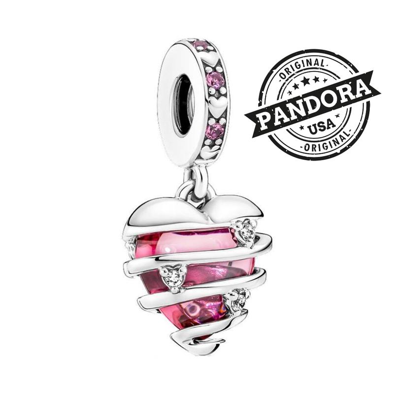 Шарм пандора оригінал сша срібло 925 проба цирконій рожеве сердечко решітка камені об'ємне...