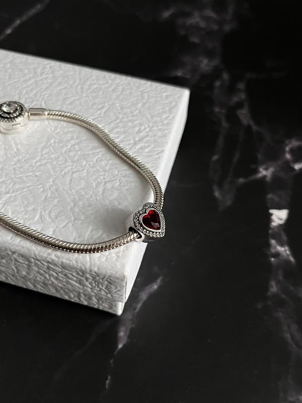 Намистина «Серце з червоним каменем» срібло, шарм підвіска до браслету Пандора Матеріал: Сплав, Срібло 💎 Йде у фірмовому мішечку 🎁