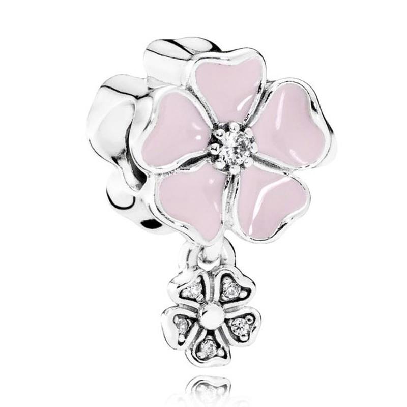 Срібний шарм пандора 791827en40 квітка рожевий квіточку рожева магнолія з камінням камені...