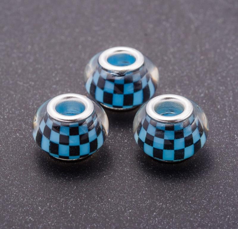 Намистина пандора блакитна шахматка пластик d-13мм d-5мм фас.11шт