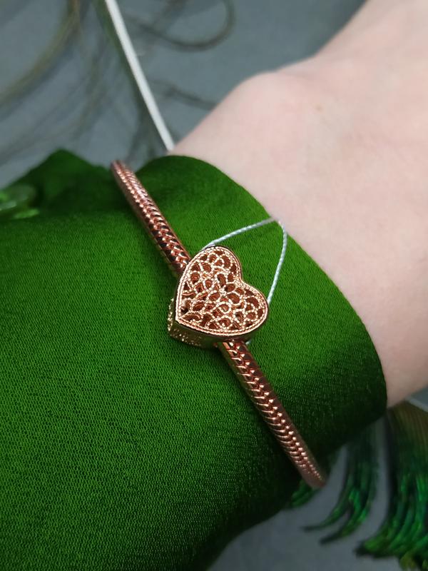 Шарм пандора срібло 925 проба ale пломба бирка рожеве золото ажурне серце об'ємне мереживн...