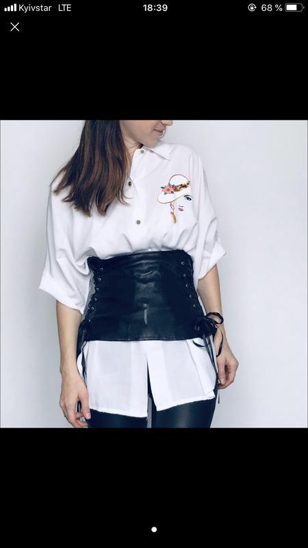 -💖 додай у обране, щоб стежити за ціною - ⭐фото на тілі не робіть, простостіть) - ⭐виміри: напівобхват речі від спокійного до розтягнутого стану - ⭐читаєте опис товару повністю: Чорний шкіряний широкий пояс корсет зі шнурівкою на талію люверсами з боків стяжка від TaoBao розмір "6-10/С" Напівобхват зверху 34-41 Напівобхват знизу 48-56 Довжина 23 см Стан ідеальний, як новий. Колір чорний із чорними атласними стрічками та сріблястими люверсами. Матеріал м'яка екошкіра, середньої щільності, від натуральної не відрізнити, тягнеться. З боків можна стягнути шнурівку, ззаду — срібляста блискавка. Цена 799 грн