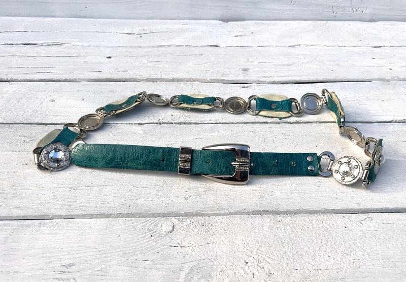 Стильний ремінь бірюзового кольору з металевими елементами, Розмір 86-100 см, Хороший стан Якісний, хороший, пояс. , є невеликі сліди використання зсередини Розмір: 86-100 см Склад: шкірзамінник Заміри: довжина - 110 см ширина (см) - 2.5 см Дуже хороший стан.