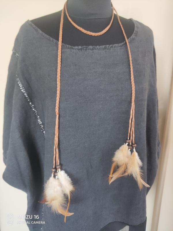 Кожаный пояс с перьями Можно носить как украшение на шею
