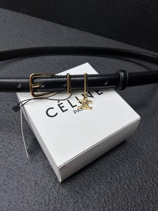Ремінь жіночий 2см шкіра + коробка, ремінь классика шкіряний стилю celine селін чорний зол...