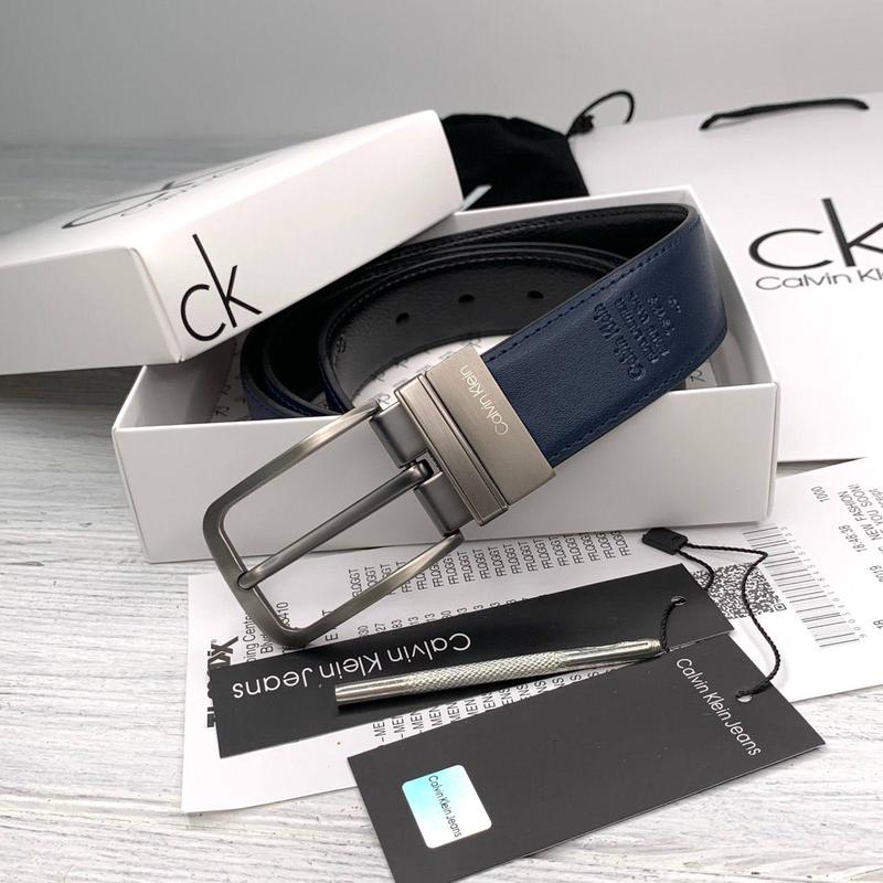 Чоловічий ремінь calvin klein чорний / синій на подарунок